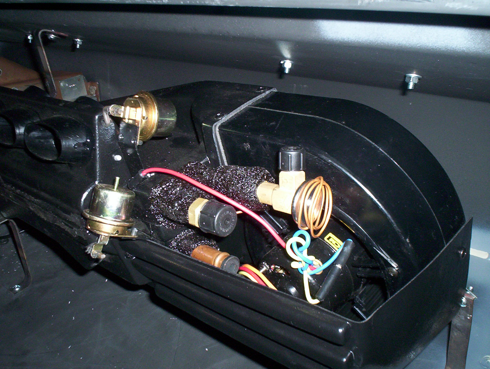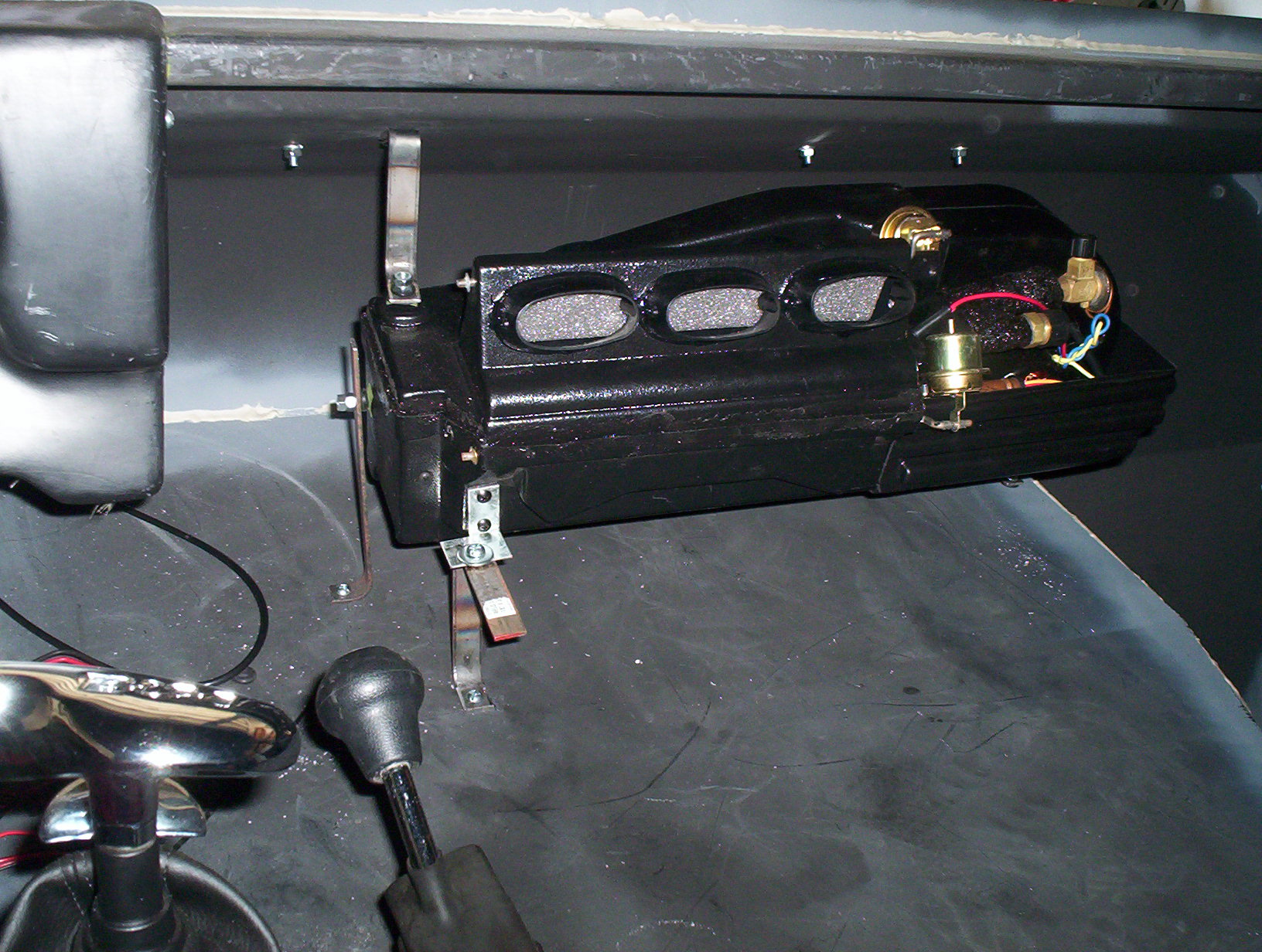 | MORE TEXT AND PHOTOS ARE PLANNED FOR THIS SECTION. Until then, here is some basic information. Our system was purchased from Urban Gorilla as part of the kit. The A/C and heater system is supplied by Southern Hot Rods, and is a Maxi-II system. The kit was very complete, and for the most part, the instructions were clear. We made a couple of phone calls to Southern to get clarification, but otherwise this installation went smoothly. |