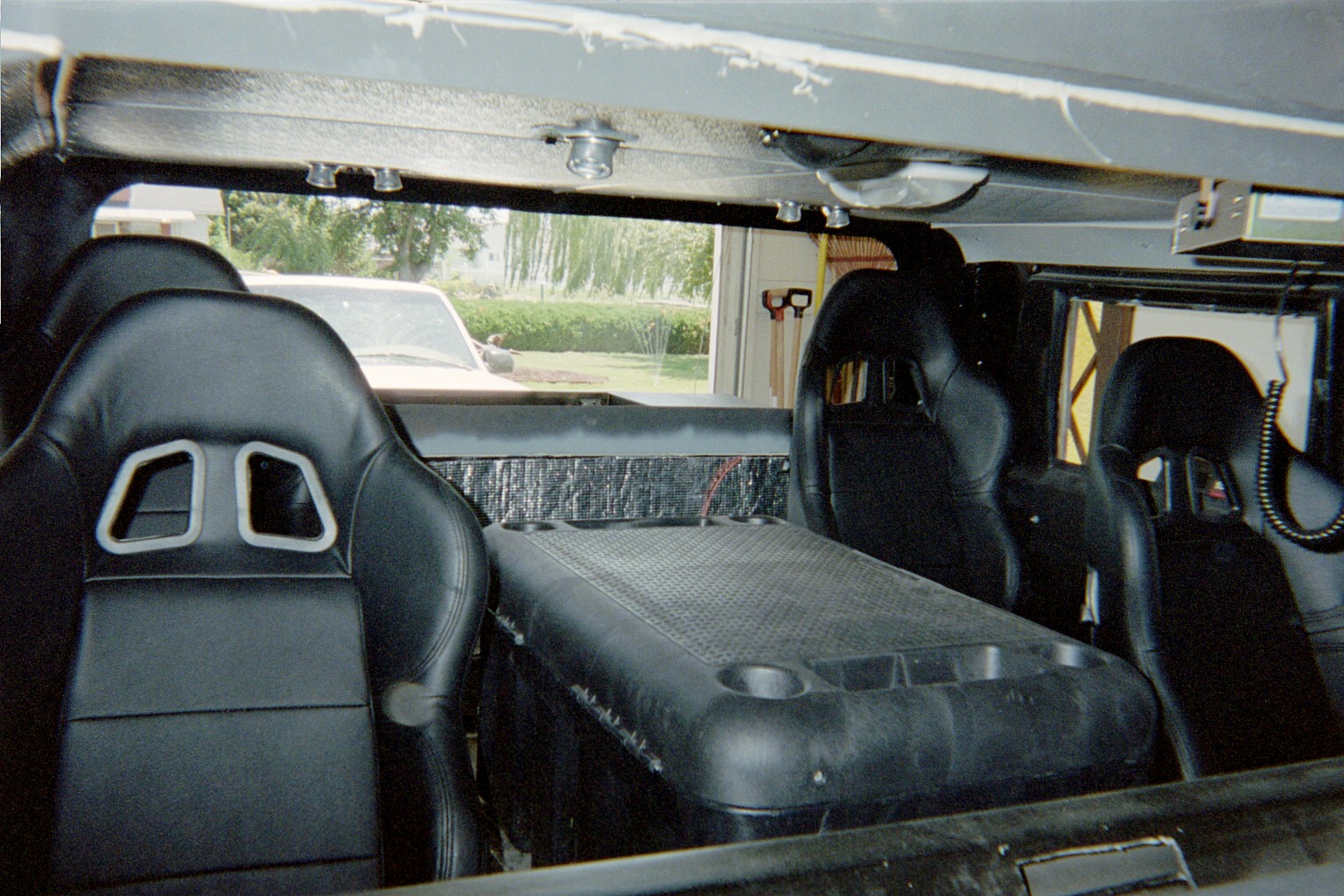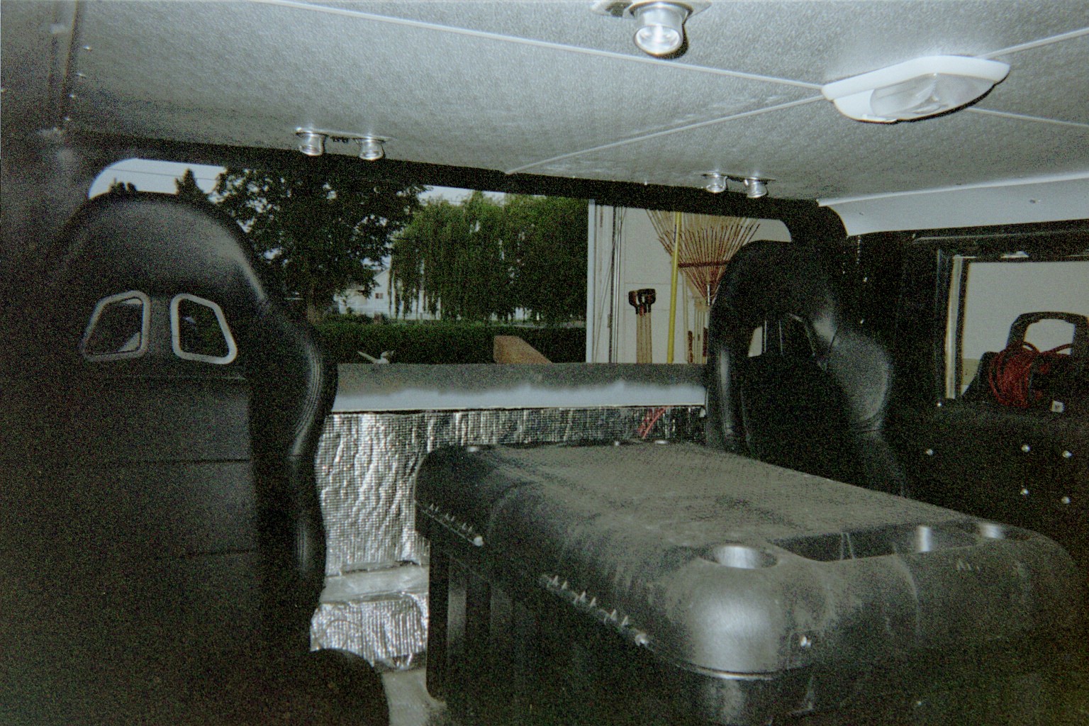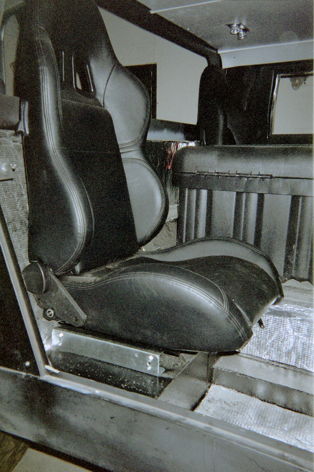 | Right Rear Seat Sitting on mounting rails purchased with the Euro-style, Leatherette racing seats from Summit Racing. Note, they are sitting in place, but not yet installed. | |||||||||||||||||||||||||||||