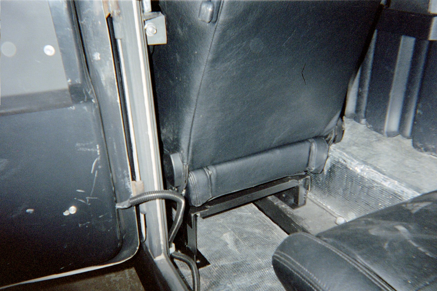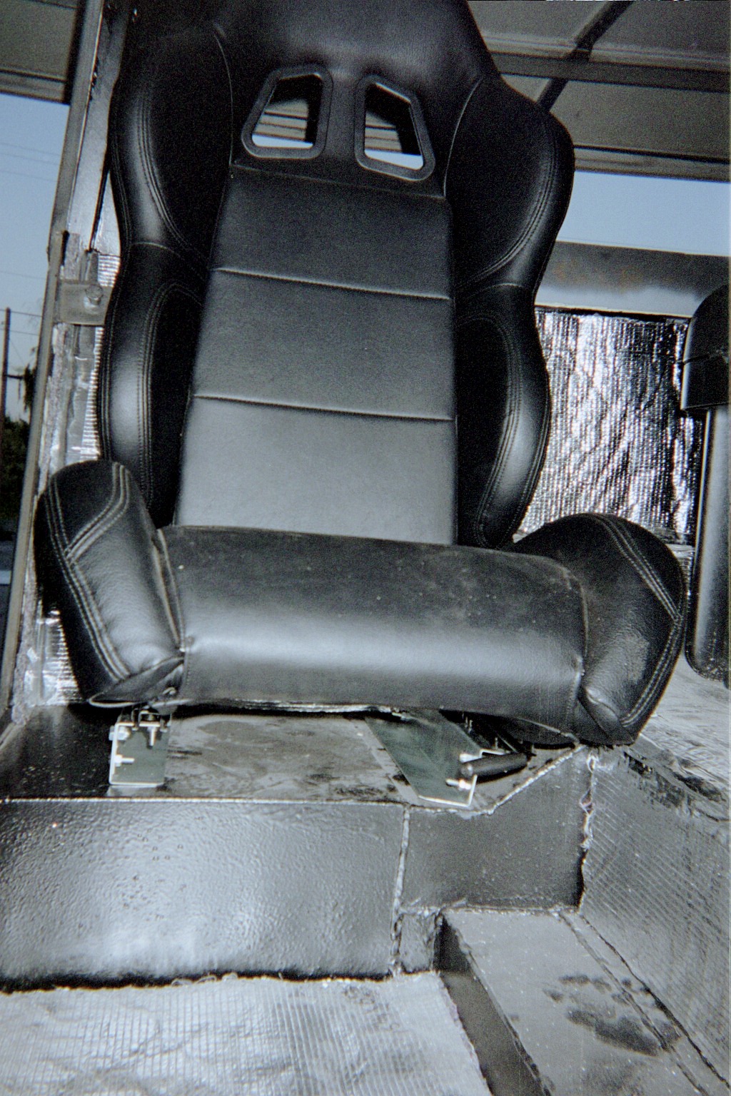 | Right Front Seat Frame and Seat 2-inch angle iron and 1-inch square tubing were welded together to straddle the height different between the inboard and outboard mounting points. |