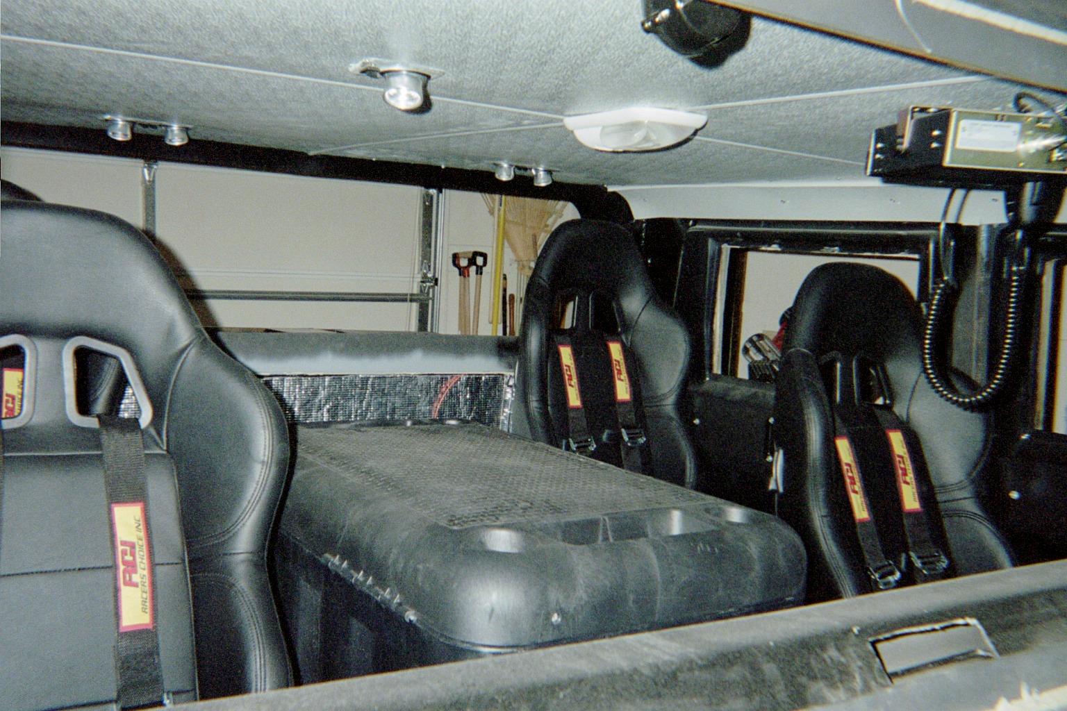 | The racing harnesses are 2-inch RCI (Racers Choice) Four Point harnesses. They attached at four points to the body, and were easy to install. We felt like the places in Idaho where we intend to drive this vehicle were enough reason to go with racing harnesses. The bottom line is - we want to stay in our seats no matter what. Now we will. We used 3/8" stainless steel bolts with stainless washers and ny-lok nuts. | |||||||||||||||||||||||||||||
